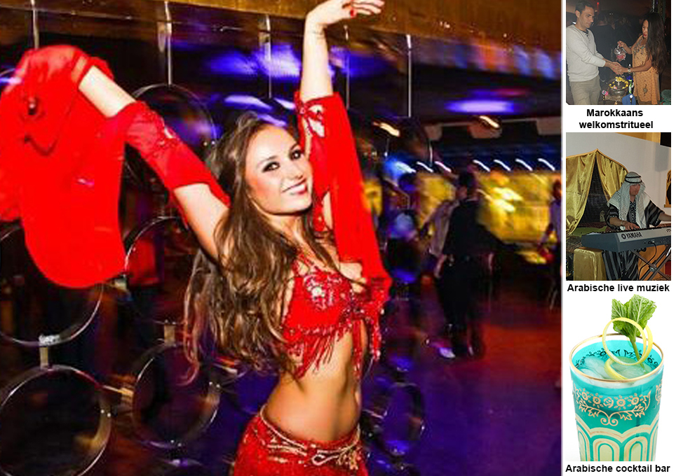 Een compleet “1001 Nacht” themafeest: buikdanseressen, slangen, spijkerbed, glas, zwaardendans, vuurshow, theekarretje, waarzegster, en nog veel meer!