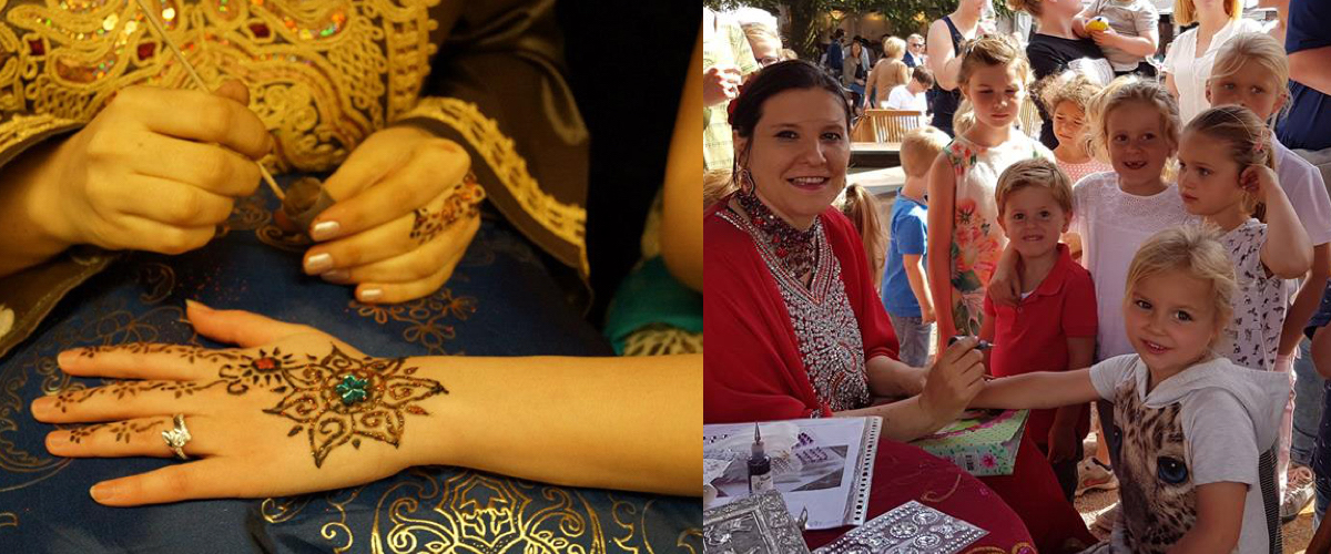 Vier je vrouwelijkheid sier je handen met henna Catering en foodtrucks Oosters theeterras Sneltekenaar Karikaturist